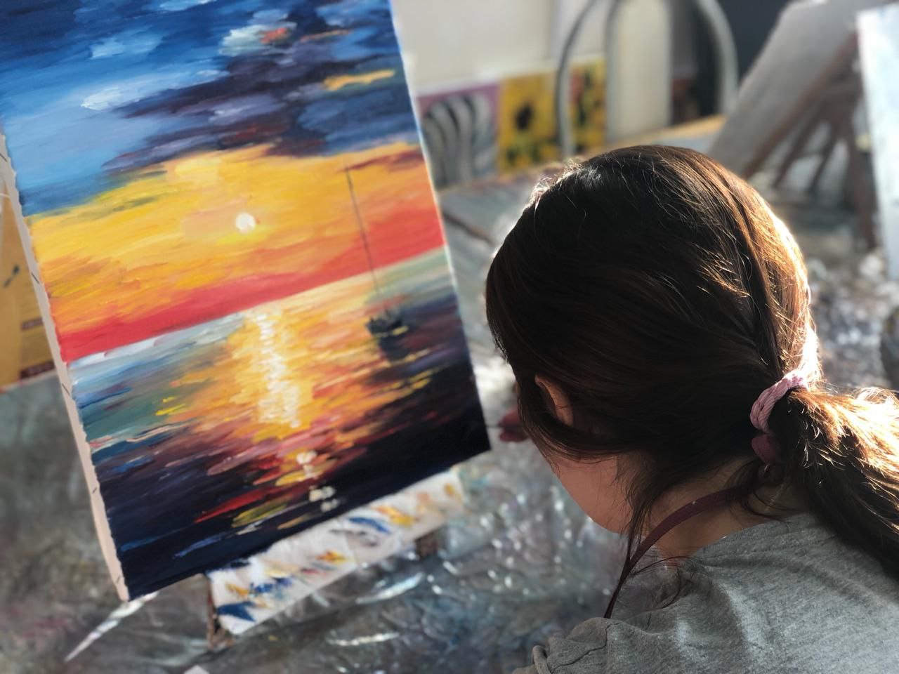 Анастасия с детства хотела рисовать, но прислушалась к себе, только когда сама стала мамой. Купила кисти, краски, бумагу, посмотрела курсы в интернете и начала творить. Больше всего Анастасии нравилось рисовать природу: ярко-пламенную зарю, спокойное море, полевые цветы. Её последняя работа — голубой цветок дельфиниум на бумаге А4.